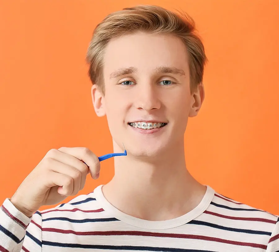 Even though it takes more time and effort with braces, we stress the significance of flossing every day during treatment. We sell special orthodontic floss threaders and suggest using interdental brushes to make it easier to clean between teeth and under wires. We also talk about the benefits of water flossers, which can be quite useful for people who have trouble with regular flossing.